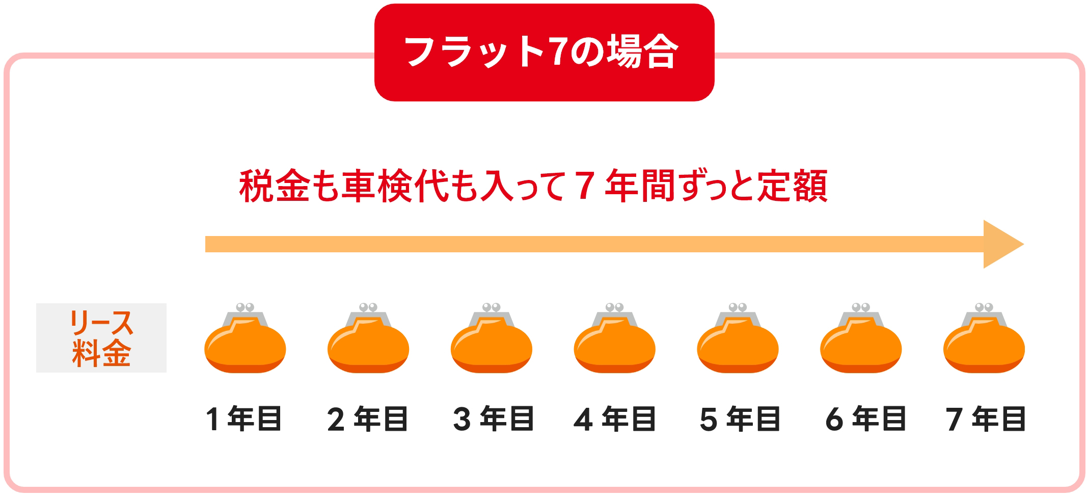 フラット7は主に7年間のリース契約で、月々定額の支払い計画が立てやすいのが特徴です。